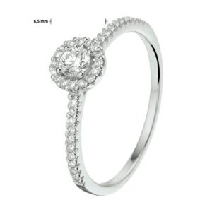 14k Witgouden ring uitgevoerd met een schitterend diamant vlak. De ring heeft een breedte van 6.5mm en de solitair diamant heeft een diamantgewicht van 0.17ct.