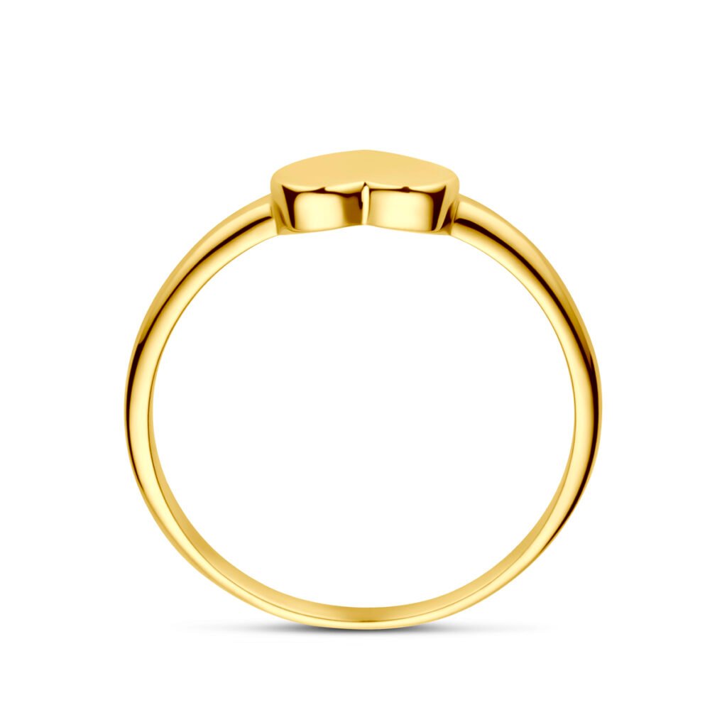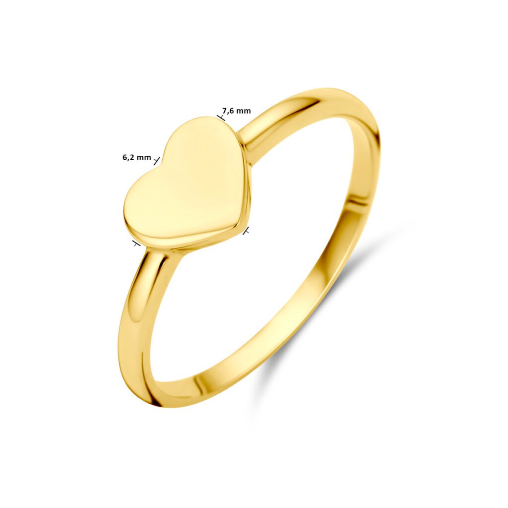 14k Geelgouden ring uitgevoerd met hart. De ring heeft een afmeting van 6.2×7.6mm.