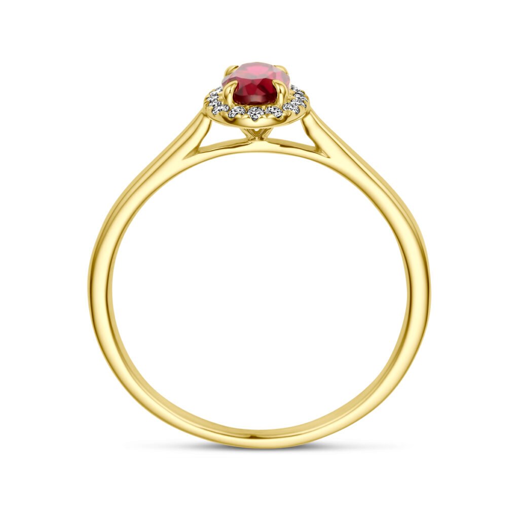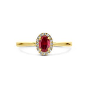 Ring Lab Grown Robijn En Diamant 0.075Ct H Si Halo 14K Geelgoud