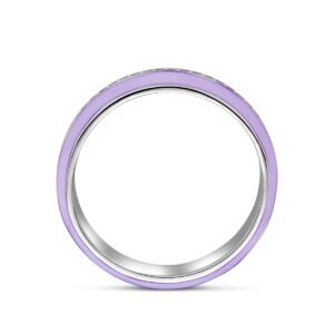 Gerhodineerd 925 zilveren ring uitgevoerd met paarse emaille en zirkonia. De ring heeft een breedte van 6.5mm.
