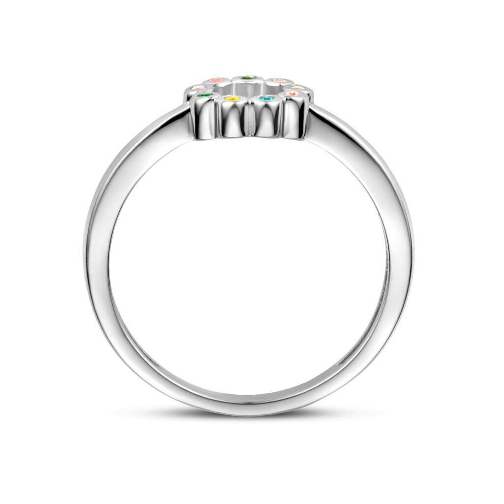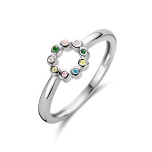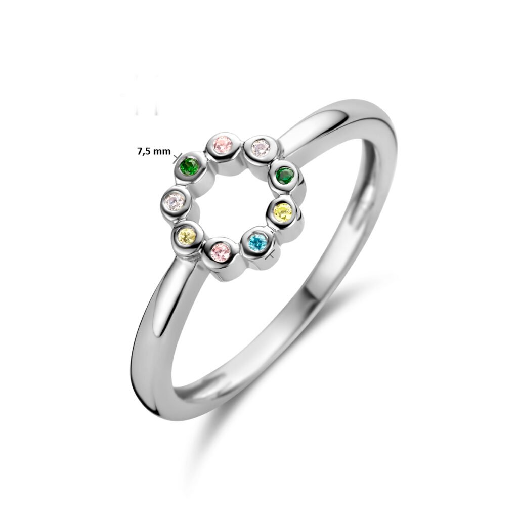 Ring Rondje Meerdere Kleuren Zirkonia Zilver Gerhodineerd