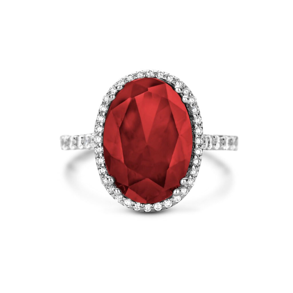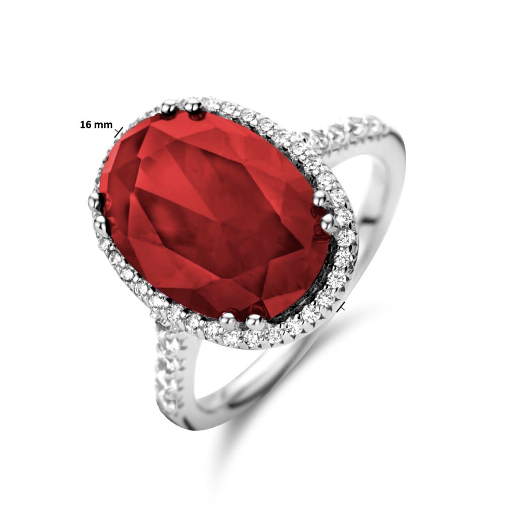 Ring Rood En Wit Zirkonia Halo Zilver Gerhodineerd