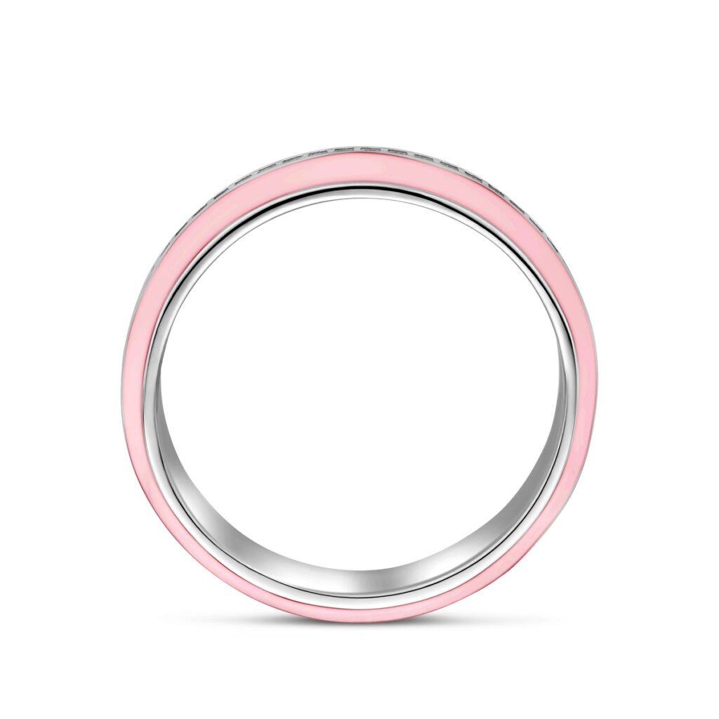 Ring Roze Emaille En Zirkonia Zilver Gerhodineerd