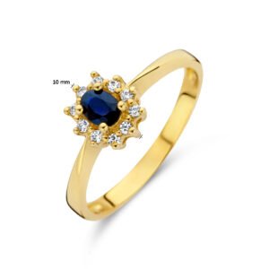 Ring Saffier En Zirkonia Halo 14K Geelgoud