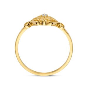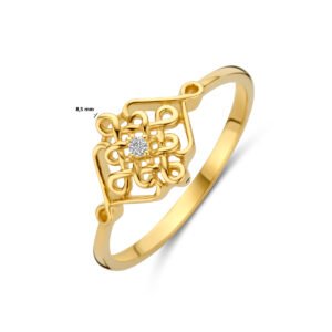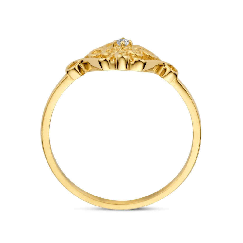 14k Geelgouden dames ring uitgevoerd met zirkonia. De ring heeft een breedte van ..mm.