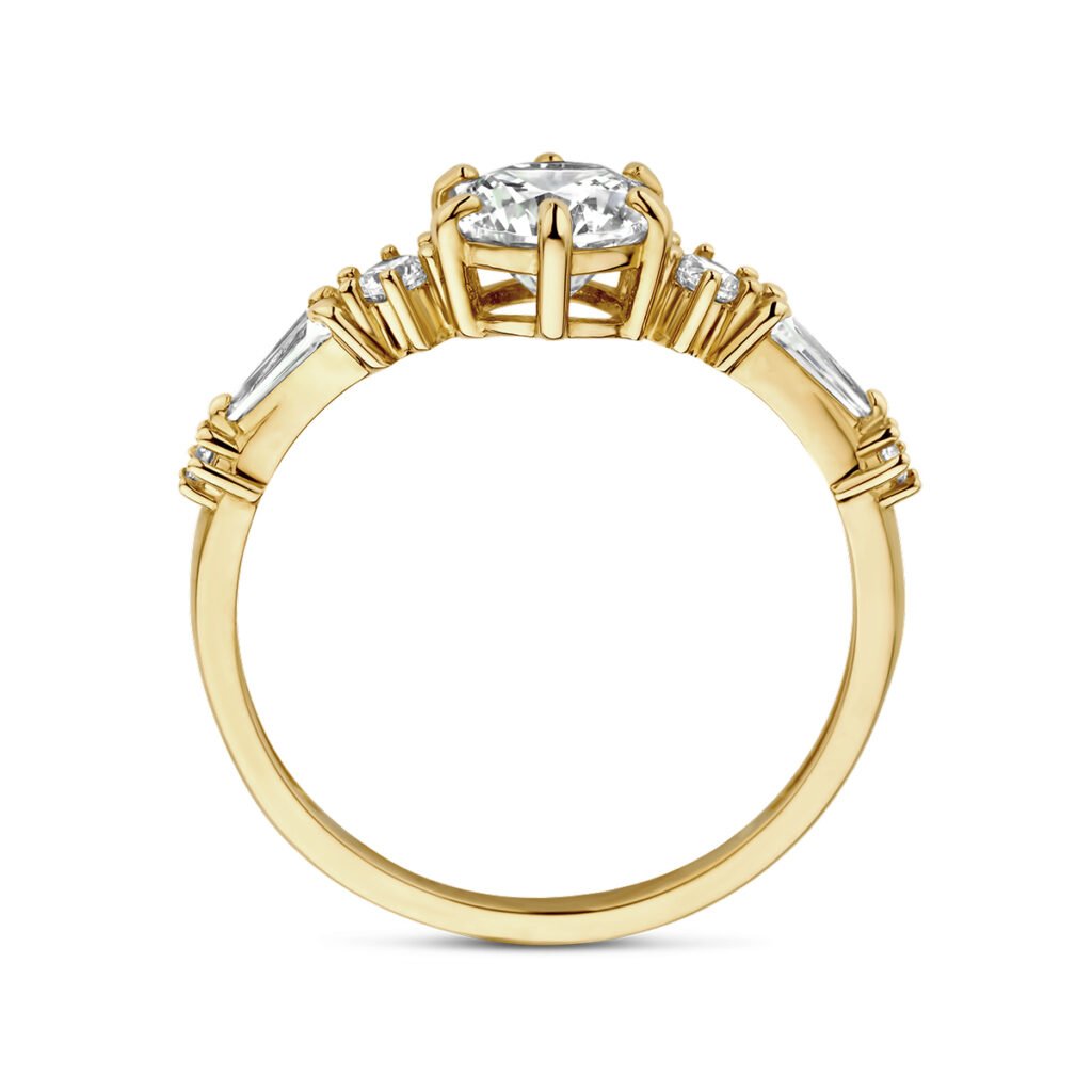 14k Geelgouden ring uitgevoerd met zirkonia. De ring heeft een breedte van 7.5mm.