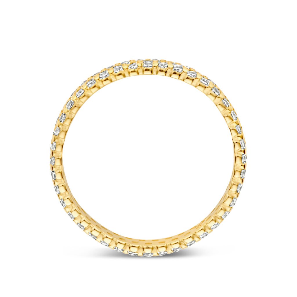 14k Geelgouden ring uitgevoerd met zirkonia. De ring heeft een breedte van 3mm.