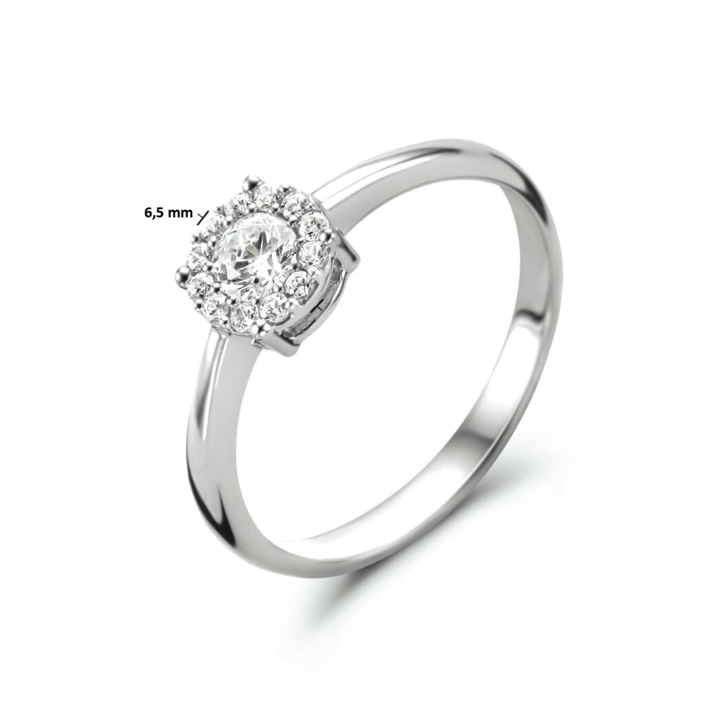 14k Witgouden ring uitgevoerd met schitterende zirkonia. De ring heeft een breedte van 6.5mm.