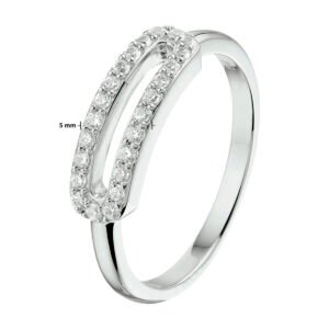 Gerhodineerd 925 zilveren ring uitgevoerd met een schitterende zirkonia rij. De ring heeft een breedte van 5mm.