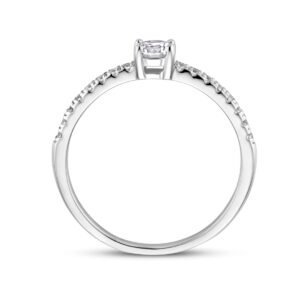 Gerhodineerd zilveren ring uitgevoerd met schitterende zirkonia. De ring heeft een breedte van 4mm.