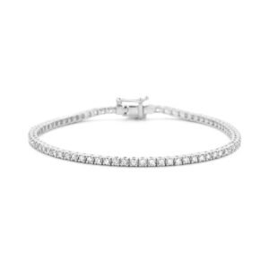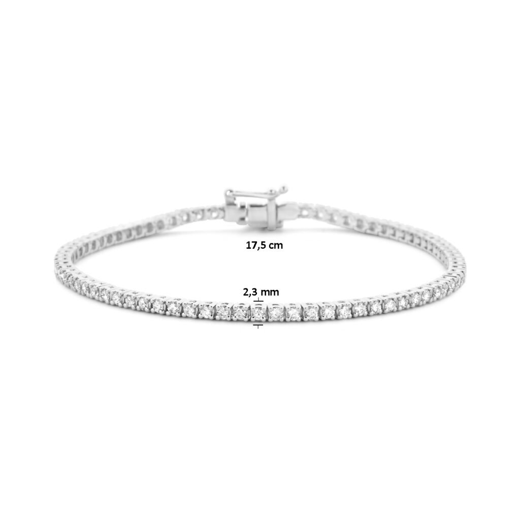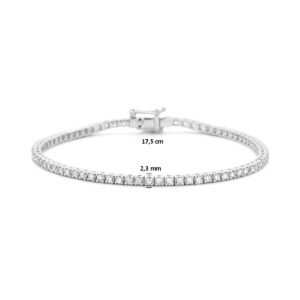 14k Witgouden tennisarmband uitgevoerd met schitterende diamanten. De tennisarmband heeft een draaglengte van 17.5cm en een schakelbreedte van 2.3mm. Het diamantgewicht is 2.00ct.