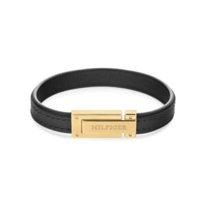 Deze armband van Tommy Hilfiger uit de jewelry serie met nr: TJ2790561 is een opvallend model. De zwarte glad leren heren armband heeft een goudkleurige magneetsluiting met het Tommy logo en heeft een lengte van 19cm. Ook leuk te combineren met andere sieraden van Tommy Hilfiger.