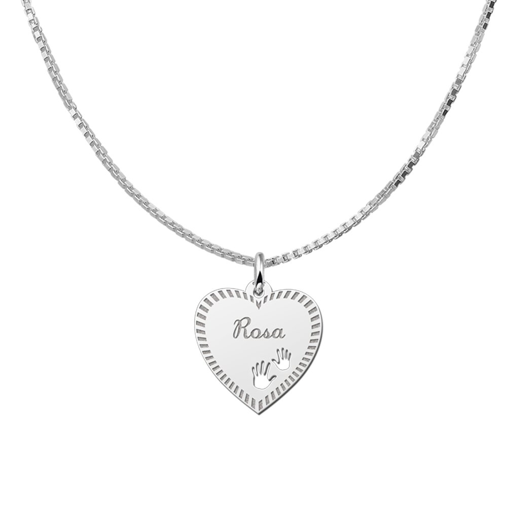Zilveren graveerplaatje hart met rand en handjes – Names4ever