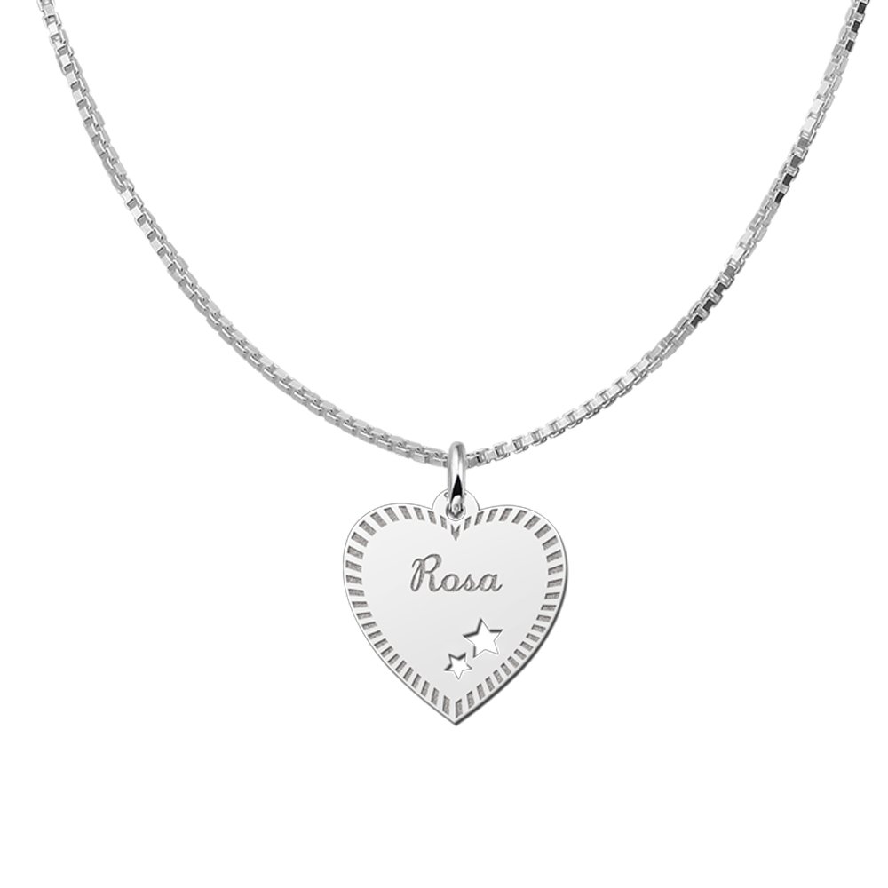 Zilveren graveerplaatje hart met rand en sterretjes – Names4ever