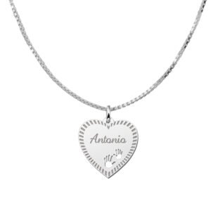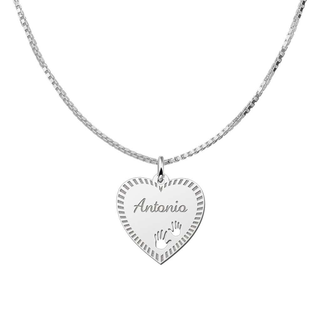Zilveren graveerplaatje hart19 met rand en handjes – Names4ever