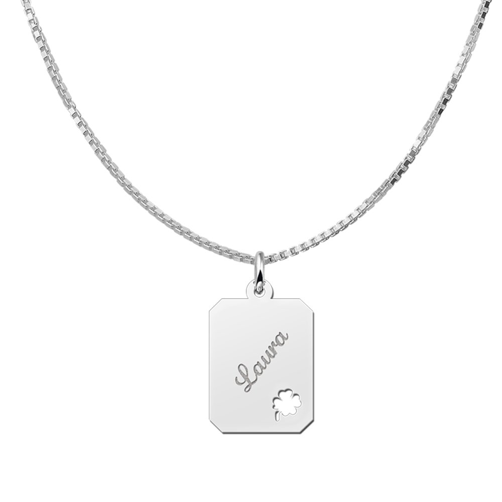 Zilveren graveerplaatje recht met klaver 4 – Names4ever
