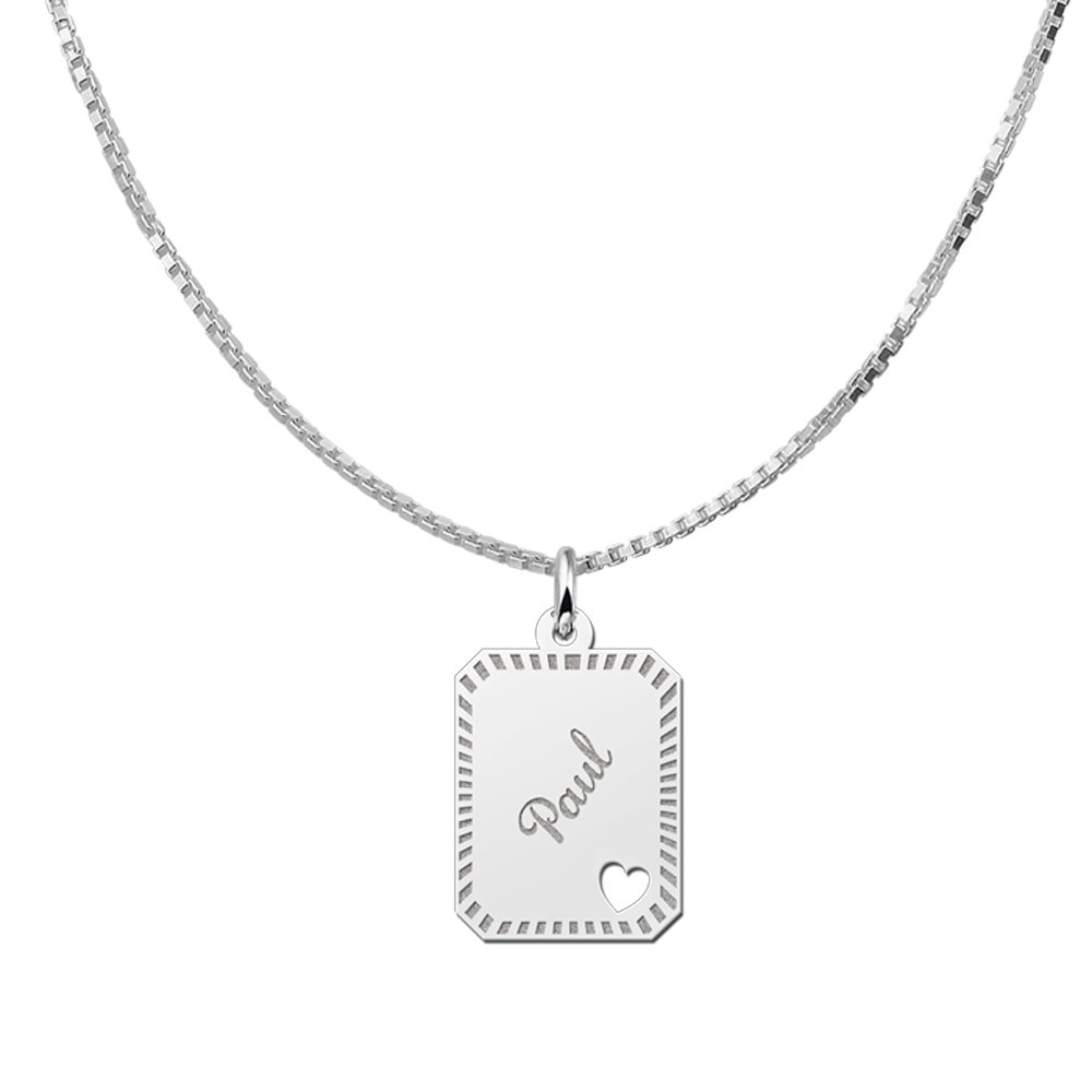 Zilveren graveerplaatje recht met rand en hartje – Names4ever